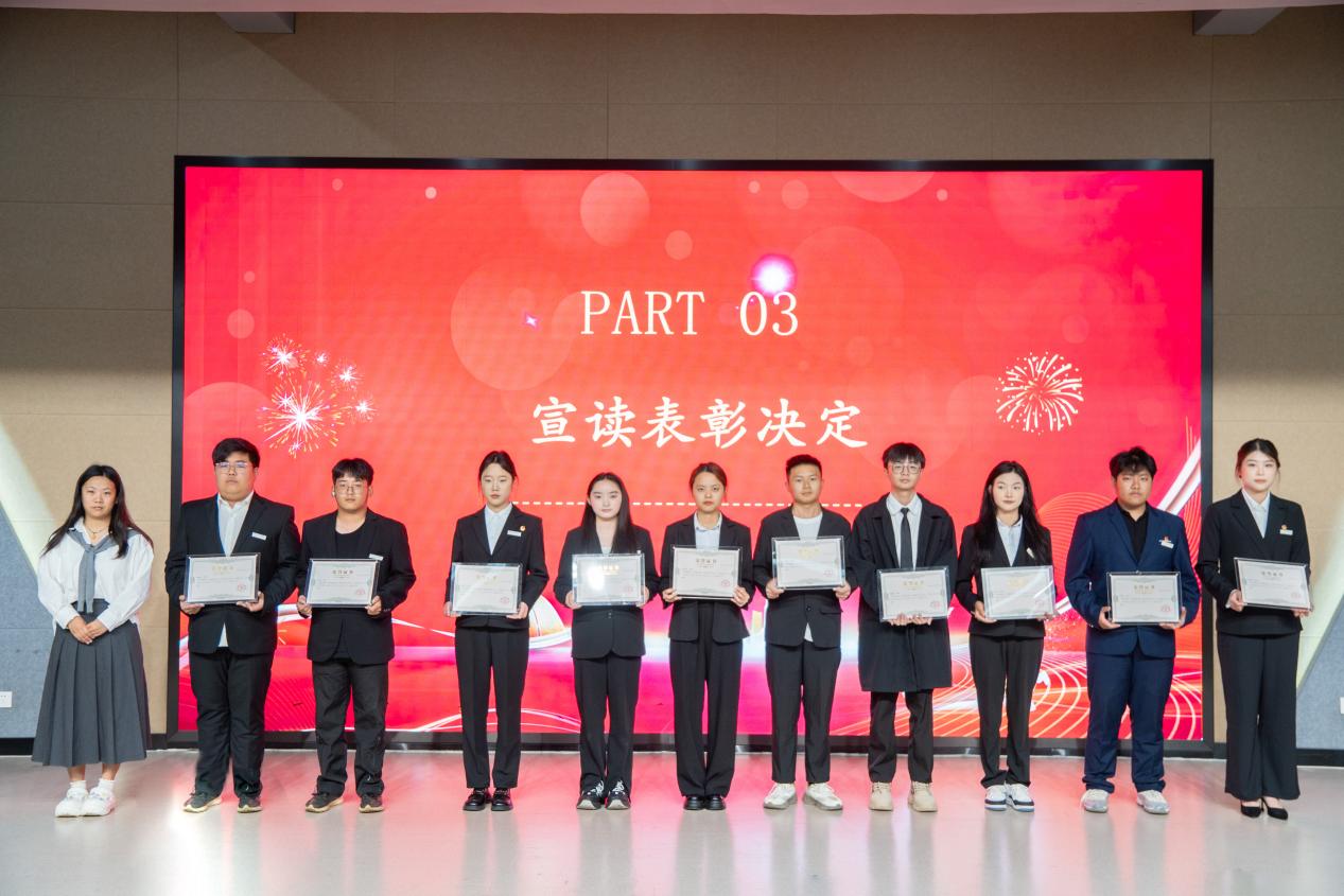 大会首先进行年度表彰环节。文涛书记宣读优秀工作人员、优秀学生干事及干部表彰决定,肯定获奖同学在团务工作中展现的 “奉献、协作、创新”精神,激励全体青年以榜样为镜,厚植家国情怀,锤炼实干本领。随后,主席团代表石盈盈以“在担当中成长,在服务中蜕变”为主题分享工作感悟,回顾团队在校园文化建设、心理健康服务等实践中的探索,引发在场学生对“学生干部价值”的共鸣。