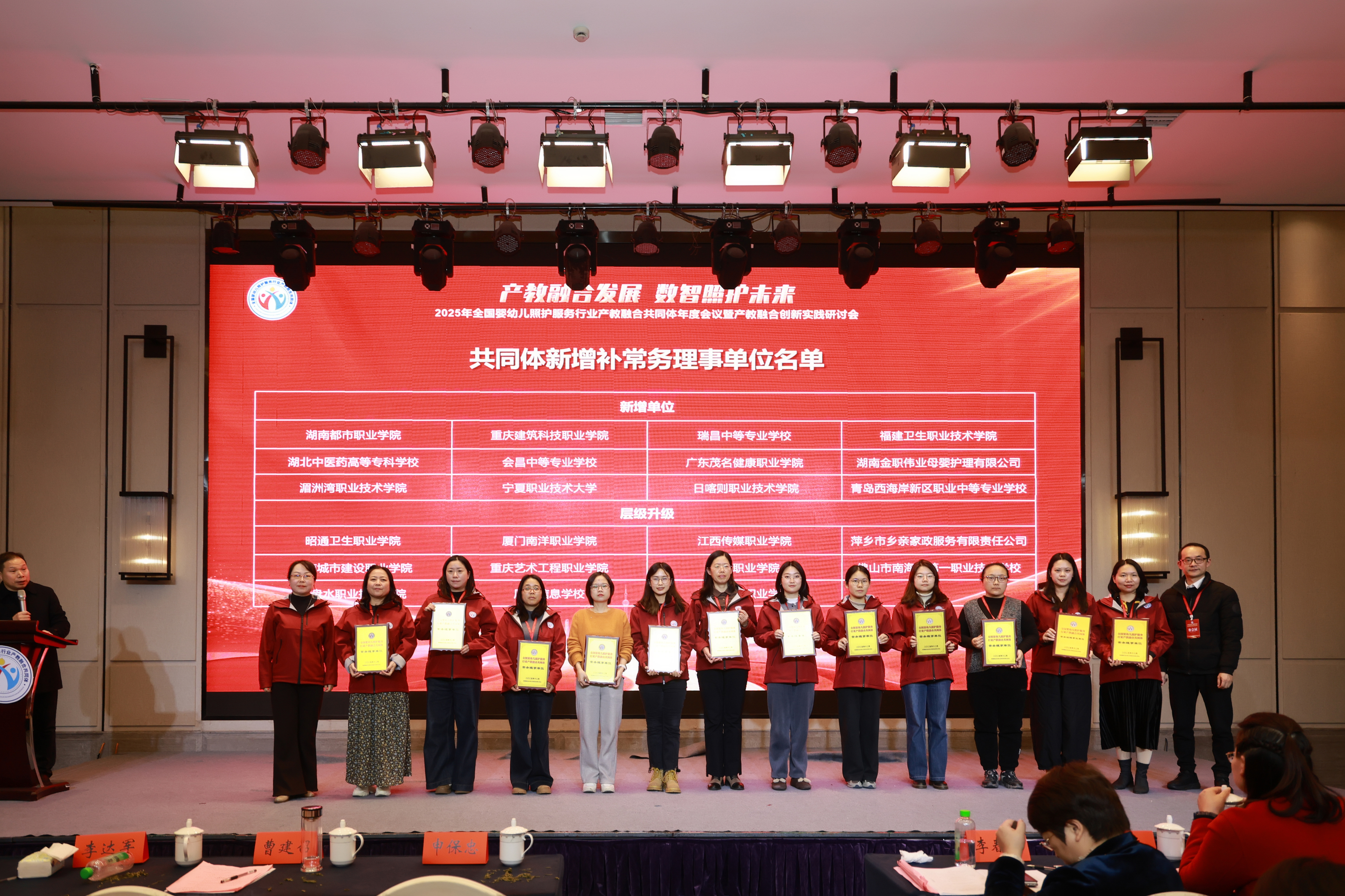 本次大会聚焦国家“一老一小”战略,围绕托育服务体系建设、产教融合共同体运行、乡村托育人才培养、专业标准与课程开发等核心议题展开研讨,分享了行业创新实践与典型案例,明确了协同育人、资源共享的工作方向。陈威副院长、杨燕老师全程参与专题论坛与合作洽谈,精准对接全国托育产业发展需求。